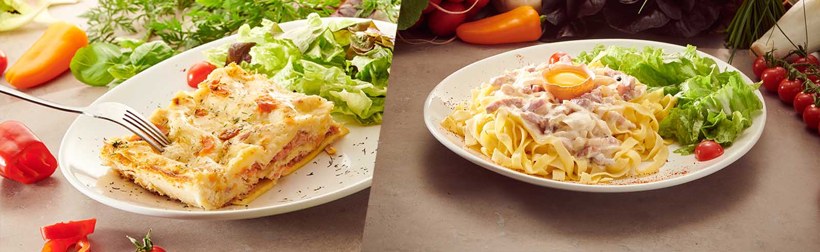 Viande hachée, tomate, herbes aromatiques, béchamel, parmesan